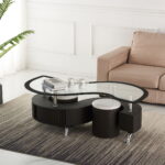 Curved style, glass top, two stools
